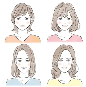 顔の輪郭やパーツの特徴、バランスなどから顔タイプを分類することで、似合うファッションのテイストや形、素材、髪型などを導き出します。